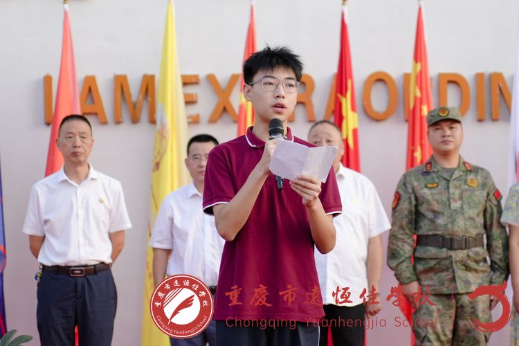 高一 3 班學生王志洋代表全體學員進行了宣誓:“我們莊嚴宣誓:服從命令,聽從指揮;刻苦訓練,磨練意志;團結協(xié)作,勇爭第一;遵守紀律,保證安全;為班級爭光,為學校添彩!我們將以堅定的信念和頑強的毅力,圓滿完成軍訓任務,展現(xiàn)遠恒佳學子的卓越風采。