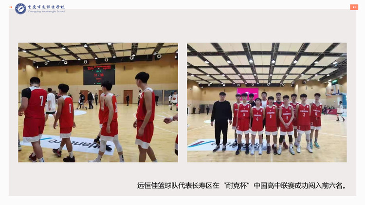 遠(yuǎn)恒佳籃球隊代表長壽區(qū)在“耐克杯”中國高中聯(lián)賽成功闖入前六名。