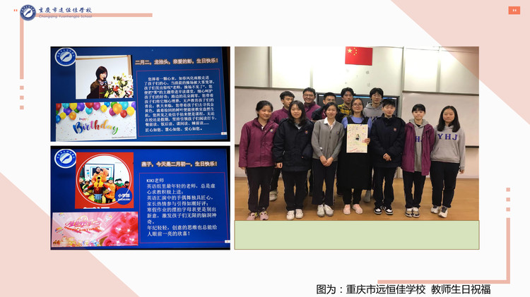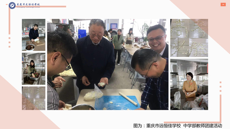 學(xué)校領(lǐng)導(dǎo)記得每一位老師的生日,所有的同事們接龍送上暖心的生日祝福,滿滿的儀式感。國際婦女節(jié),學(xué)校組織全體女教職員工踏青長壽湖,滿滿的幸福感。課余之時,中學(xué)部全體教師齊聚自助廚房,制作餃子宴,滿滿的快樂感。
