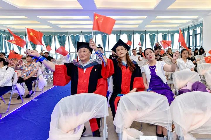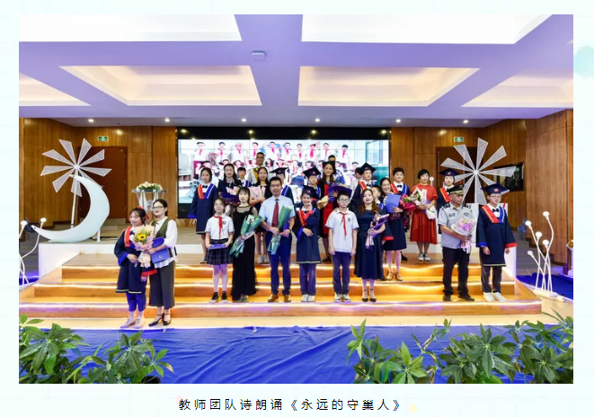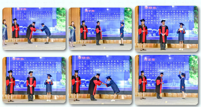 時(shí)光雖然匆忙,我們一起分享一路歌唱,也許人生路上會(huì)有曲折坎坷,但我們不能迷失方向。生于華夏,何其有幸,畢業(yè)典禮恰逢慶祝建黨100周年的好日子,在場(chǎng)全體師生及家長(zhǎng)同唱《我和我的祖國(guó)》。