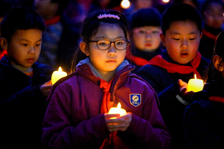 許愿時(shí)間,全體師生靜靜地凝視著手中的心燈,輕輕地閉上雙眼,默默地許下心愿:愿這一學(xué)期能像谷愛凌一樣挑戰(zhàn)自己,付出連自己都難以置信的努力;愿這一年能像中國女足一樣永不言敗,無論結(jié)果如何,都能迎風(fēng)翻盤;愿這一生能像武大靖一樣保持一顆火熱的愛國之心,為祖國竭盡全力!
