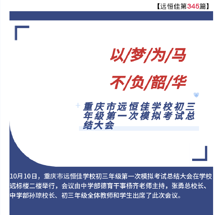 • 美好學(xué)校| 以夢為馬,不負(fù)韶華——記重慶市遠(yuǎn)恒佳學(xué)校初三年級(jí)第一次模擬考試總結(jié)大會(huì)