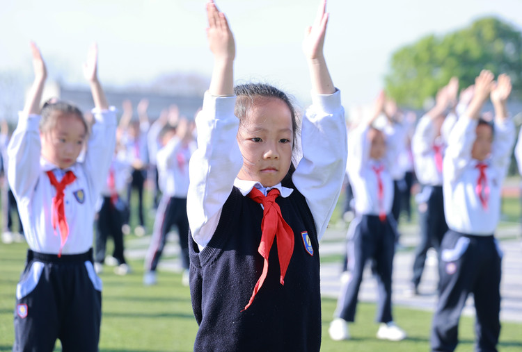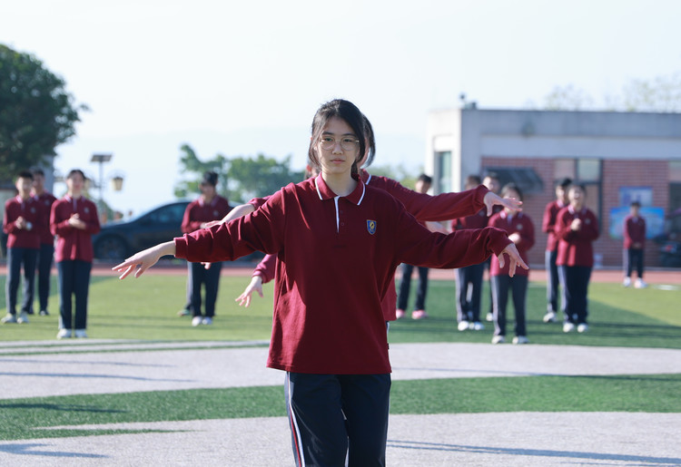 瞧,統(tǒng)一的著裝,整齊劃一的動作,映入眼簾的是小學(xué)、初中、高中學(xué)生的校操展示。 隨著動感旋律響起,遠(yuǎn)恒佳學(xué)子在輕松而愉快的音律中,挺胸、拍手、扭頭、伸臂……舒展的身體,律動的身影,挺拔的身姿,一跳一躍間,盡顯朝氣與活力。