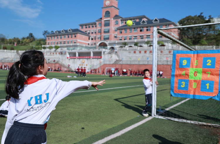 握起、準(zhǔn)備、發(fā)射!小小的沙包被孩子們奮力擲出,空中劃出的弧線是他們力量的證明,距離是他們實力的標(biāo)尺!