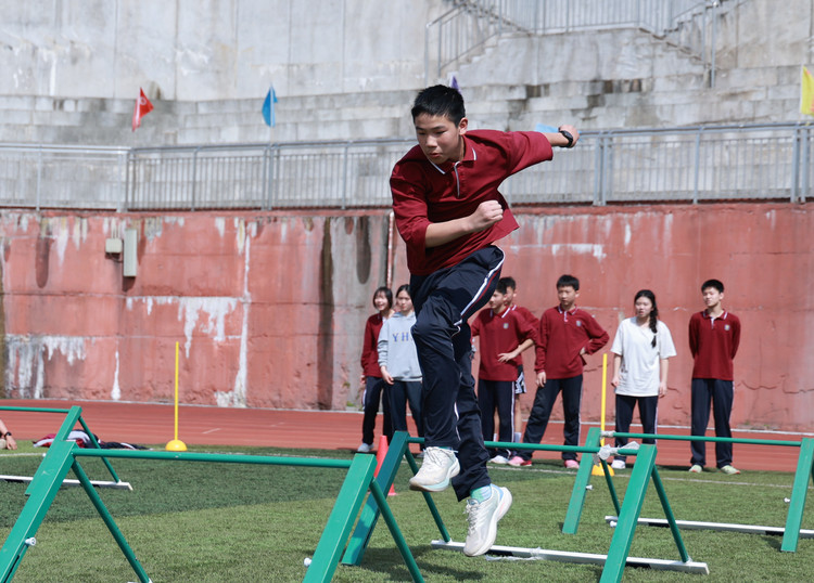 50米障礙接力作為運動會的老牌項目,深受孩子們的喜愛。腳步飛揚,傳遞力量,這是速度與合作的接力。咬緊牙關(guān),拼盡全力,為了團(tuán)隊的榮譽(yù),闊步前行,迎風(fēng)展翅。這不僅是一場激烈的角逐,更是一次突破自我的成長。