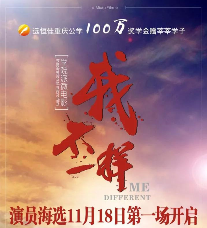 遠恒佳重慶公學微電影《我,不一樣》演員海選第一場11月18日即將開啟