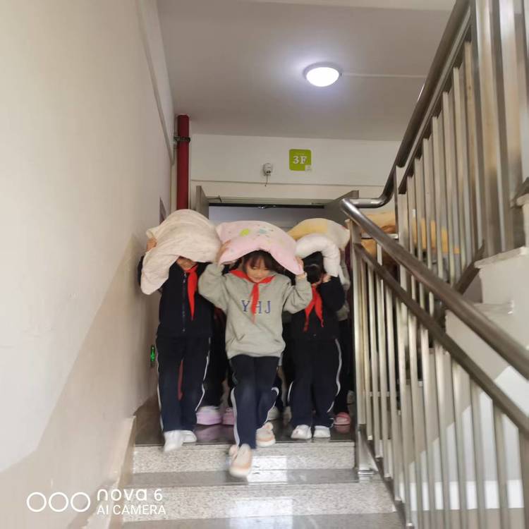 當(dāng)天下午14:00,地震演練準(zhǔn)時(shí)開(kāi)啟,全校師生分學(xué)部有序參與。警報(bào)響起后,廣播立馬給出指引:先在教職工指導(dǎo)下就地避險(xiǎn)1分鐘,再頭頂防護(hù)物,有序撤離到指定地點(diǎn),步驟拉滿(mǎn)不慌亂!