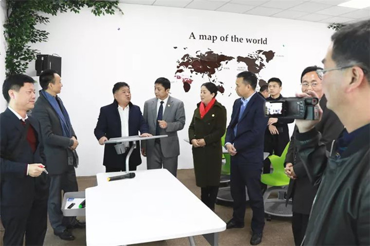 第二站來到了遠(yuǎn)恒佳重慶公學(xué)招生辦,程琳娜女士為五華縣委、縣政府領(lǐng)導(dǎo)們介紹公學(xué)的專家團(tuán)隊(duì)、校園文化與辦學(xué)理念。在公學(xué)的未來教室里,五華縣領(lǐng)導(dǎo)們紛紛體驗(yàn)了可移動(dòng)式未來課桌、講臺(tái)與電子化未來黑板,一致給出了“創(chuàng)新教室、高效課堂”的好評(píng)。