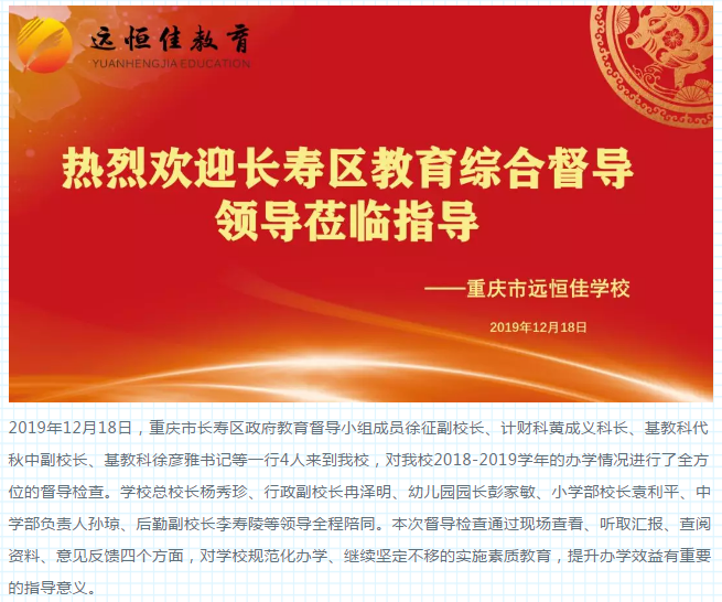 美好學校| 踐行美好教育,力行課堂革命——重慶市遠恒佳學校獲區(qū)教育綜合督導專家好評