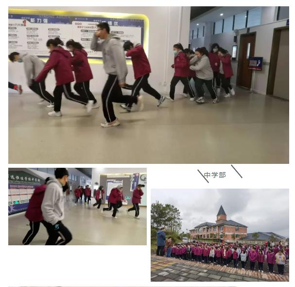 本次演練的重點是:小學部、中學部演練火災逃生疏散撤離及防踩踏;留學部演練地震疏散逃生撤離級防踩踏;校辦(保安隊)演練防恐反恐。