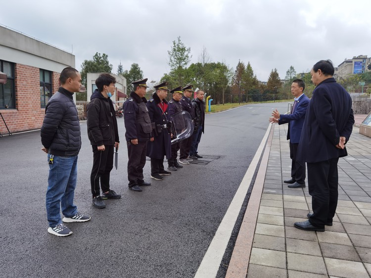 11點,學校保安隊在完成師生疏散撤離演練秩序維護工作后,迅速回到學校南門進行防控反恐演練。