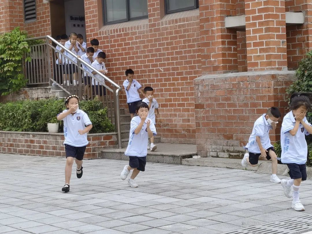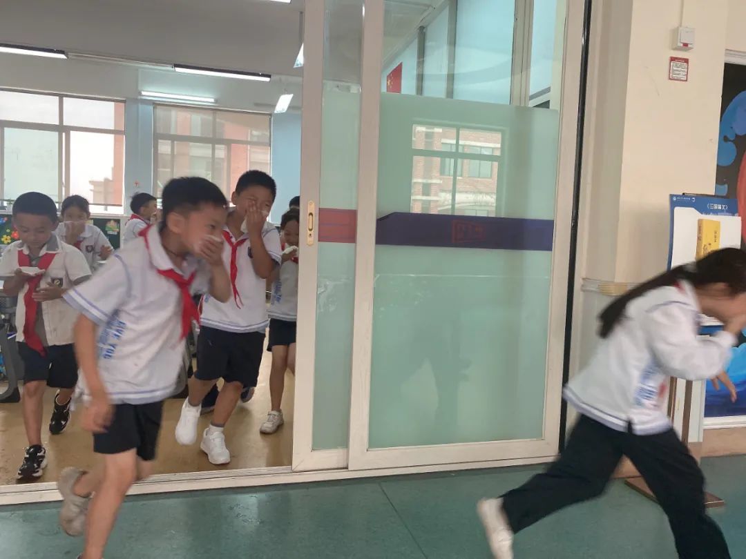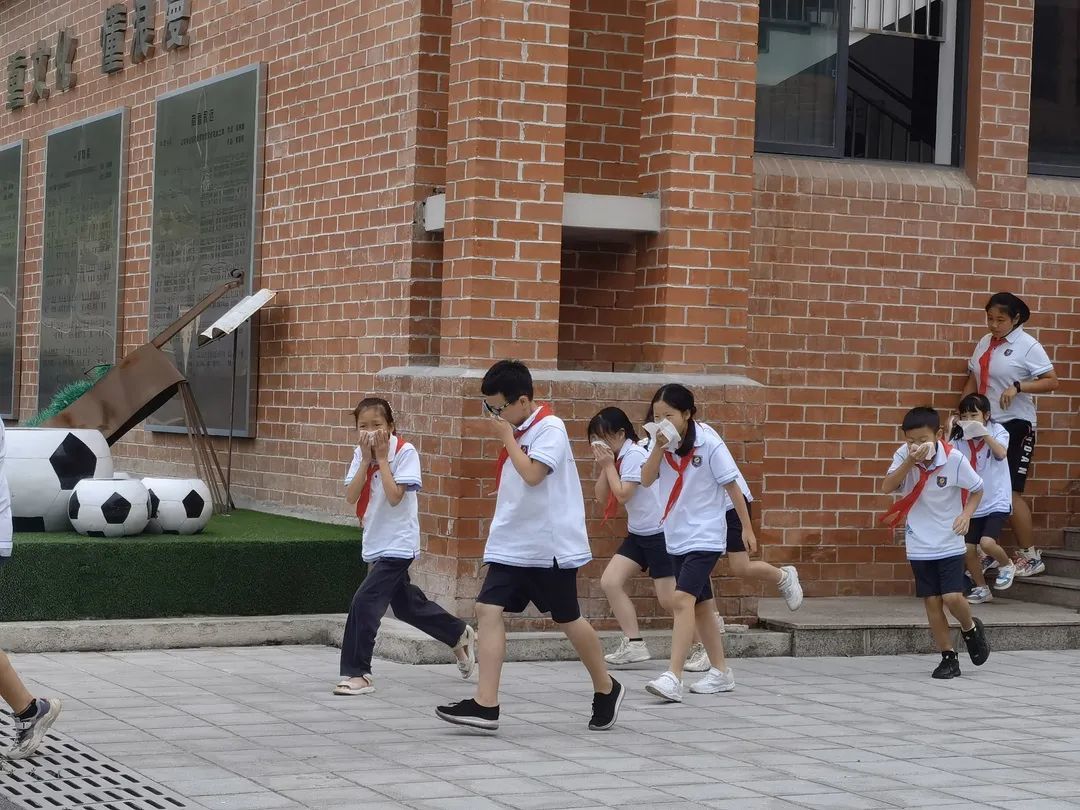 小學(xué)部學(xué)生采用濕巾捂鼻法迅速撤離