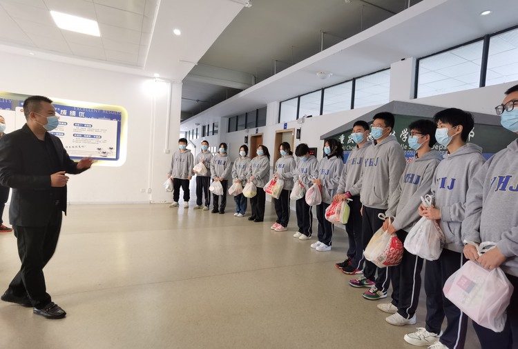 在慰問(wèn)現(xiàn)場(chǎng),區(qū)教委蔣鐵副主任先后了解了留校學(xué)生基本情況并為大家送上慰問(wèn)品,同時(shí)寄語(yǔ)師生代表:面對(duì)當(dāng)前嚴(yán)峻的疫情形勢(shì),全體周末留校學(xué)生要充分理解留校是對(duì)同學(xué)們身體健康、生命安全和學(xué)習(xí)能力的一種保護(hù)。