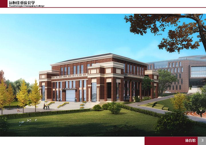 體育館內有兩個標準籃球場,四周設有可伸縮式看臺,附設劍術室、壁球室、乒乓球室、健身房等,可容納2500人集會,主要用于大型比賽、活動、訓練。采用英倫建筑風格,褐色的外墻寓意體育讓人熱情奔放;臨近街道,可對社區(qū)開放,是社校文化共建的名片之一。