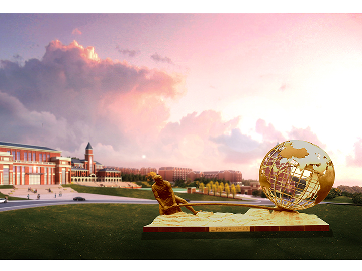 阿基米德撬地球雕塑寓意“這里給你一個支點,讓孩子走向世界”。