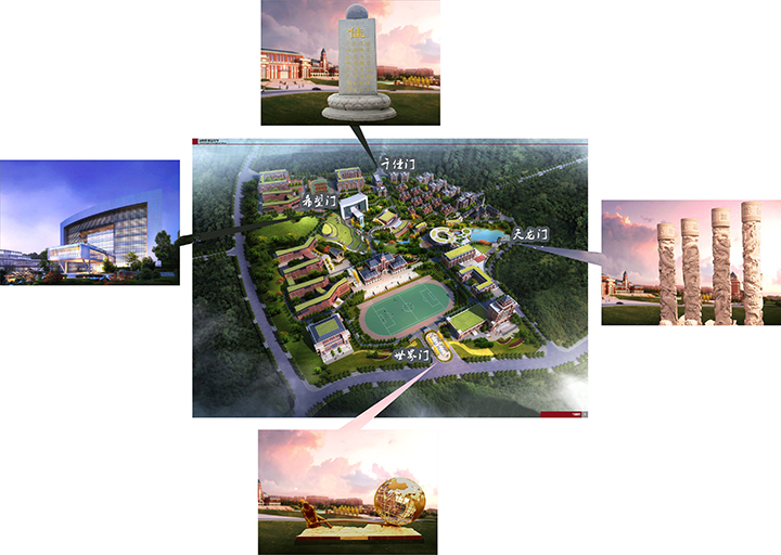 飛龍瀑、臥龍橋、盤龍溪、潛龍湖組成的生態(tài)校園循環(huán)水系,調節(jié)校園微氣候,維護環(huán)境微生態(tài),恩澤四季,安康八節(jié),山靈水秀,體現(xiàn)了“智者樂山,仁者樂水”的傳統(tǒng)文化,也體現(xiàn)了都市田園情調和綠色發(fā)展理念。