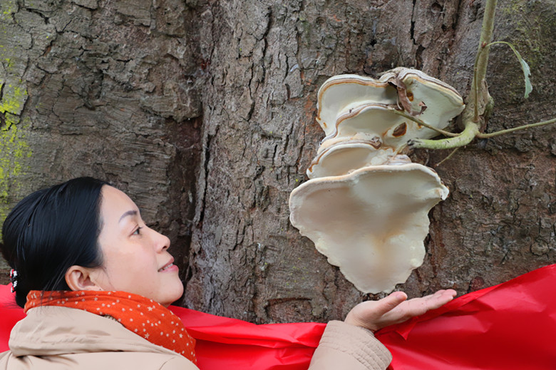 在學(xué)校最高點(diǎn)的72米處,生長(zhǎng)著一棵老黃桷樹(shù),看那粗壯的模樣,少說(shuō)也有一兩百年歷史了。樹(shù)冠很大,茂密的枝丫鋪天蓋地,遮擋出大片的綠蔭來(lái)。樹(shù)干人多高的地方,附生得有一朵碩大的靈芝,程總說(shuō)他們來(lái)征地時(shí)靈芝還在,生長(zhǎng)得好好的,可惜沒(méi)多久被人釆摘了!幸好當(dāng)初程總拍得有手捧靈芝的照片,否則說(shuō)出來(lái)還不定有人相信呢!