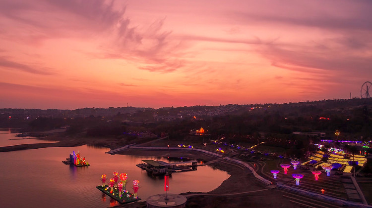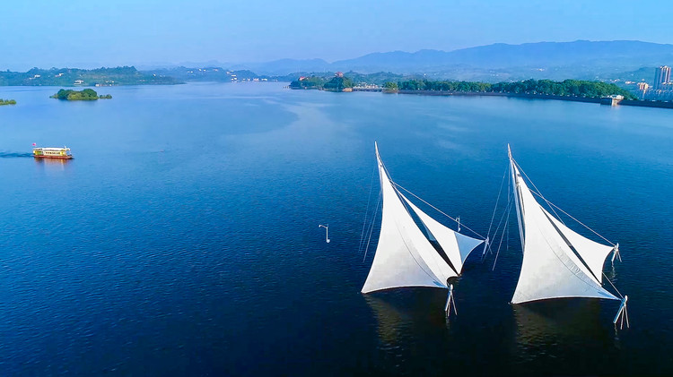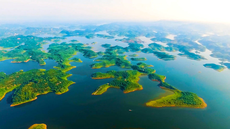 散布在湖中有兩百多個(gè)小島,航拍圖中,有人發(fā)現(xiàn),其中有幾十個(gè)小島散布湖中,居然在湖面上神奇地刻出一個(gè)巨大的繁體字,陽刻讀為壽,陰刻讀為長。這是巧合,還是天意?