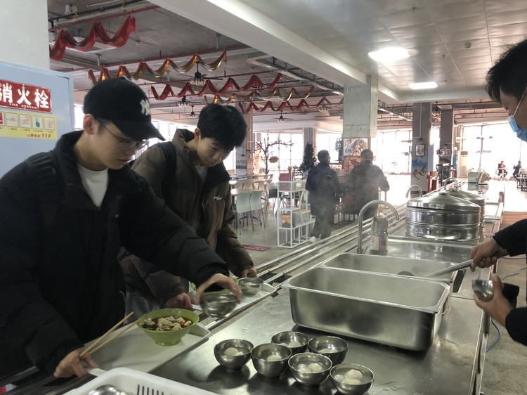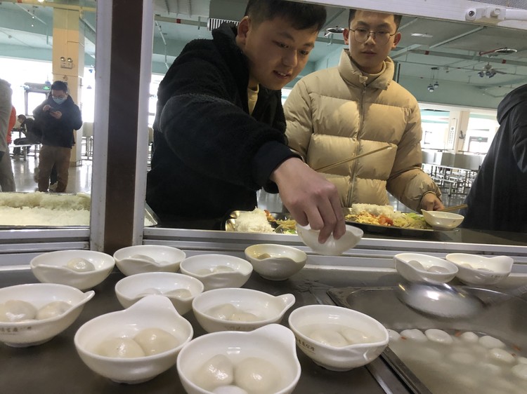 開(kāi)餐時(shí)分,煮好了一鍋鍋熱氣騰騰的湯圓,食堂師傅們一個(gè)個(gè)分裝在碗里,雪白晶瑩的湯圓和紅彤彤的紅糖枸杞讓人食欲大增。同學(xué)們接過(guò)了食堂工作人員遞過(guò)來(lái)的湯圓,嗅到湯圓所散發(fā)出來(lái)的淡淡香氣,臉上紛紛露出了溫暖的笑意。