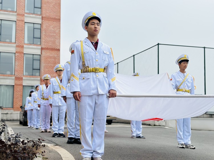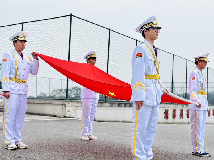 圖為第14周升旗儀式的升旗手和護(hù)旗手