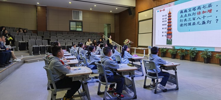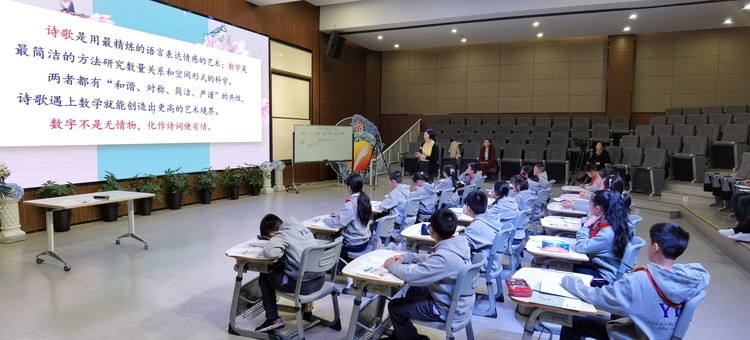 10月12日上午第2節(jié),來自廣東省的數(shù)學(xué)名師工作室主持人劉雪芳老師,帶領(lǐng)遠(yuǎn)恒佳學(xué)校5.1班的學(xué)生上了一節(jié)數(shù)學(xué)與詩歌相遇的數(shù)學(xué)文化課。劉雪芳老師的這堂課曾獲得過2019年全國數(shù)學(xué)文化優(yōu)質(zhì)課大賽一等獎(jiǎng)。名師工作室成員一行50人和遠(yuǎn)恒佳學(xué)校部分教師參與了整個(gè)獻(xiàn)課活動(dòng)。