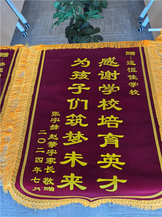 在贈旗儀式上,學(xué)校執(zhí)行校長唐勇校長及年級主任、班主任等領(lǐng)導(dǎo)親切接待了家長代表,并共同見證了這一溫馨而感人的時刻。家長們衷心感謝遠恒佳學(xué)校為孩子們提供的優(yōu)質(zhì)教育和成長環(huán)境,感謝學(xué)校致力于特色辦學(xué),培育英才,為孩子們的未來發(fā)展奠定了堅實基礎(chǔ)。這面錦旗,不僅是對學(xué)校工作的肯定,更是家長對學(xué)校美好未來的期許與祝福。