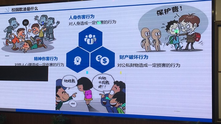 2021年9月28日上午,四年級(jí)1班王若涵同學(xué)的媽媽帶領(lǐng)法院講師團(tuán)對(duì)孩子們進(jìn)行普法教育。課題為《對(duì)校園欺凌說(shuō)不!》。