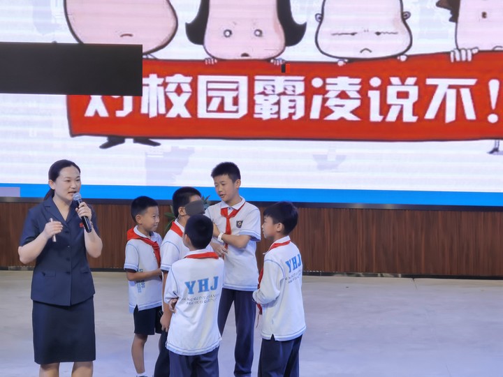 這節(jié)課形式多樣,從知識(shí)講解到情景劇表演,從視頻有獎(jiǎng)競(jìng)猜到誦讀守法三字歌。互動(dòng)中每一個(gè)學(xué)生都懂得了校園欺凌是一種違法行為。孩子們專(zhuān)注篤定的眼神,是對(duì)這節(jié)課最好的回應(yīng)。