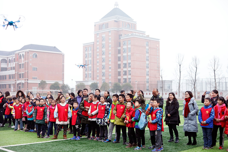 緊跟著起飛的數(shù)架無人機(jī)又迅速吸引了來賓的眼球,在航模隊(duì)員的遙控下,無人機(jī)不斷在同學(xué)們面前飛過,時(shí)而懸停,時(shí)而旋轉(zhuǎn)上升,時(shí)而來個(gè)漂亮的空滾翻……此起彼伏的喝彩聲響徹天空.
