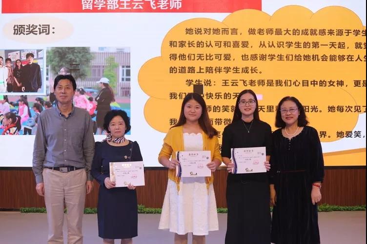 隨后,舉行了學(xué)校“月度人物”頒獎(jiǎng)儀式。集團(tuán)副總校長(zhǎng)余勝倉(cāng)和學(xué)??傂iL(zhǎng)楊秀珍為九月份“月度人物”小學(xué)部張美蓉老師、中學(xué)部鐘述嬋老師、留學(xué)部王云飛老師頒獎(jiǎng)。
