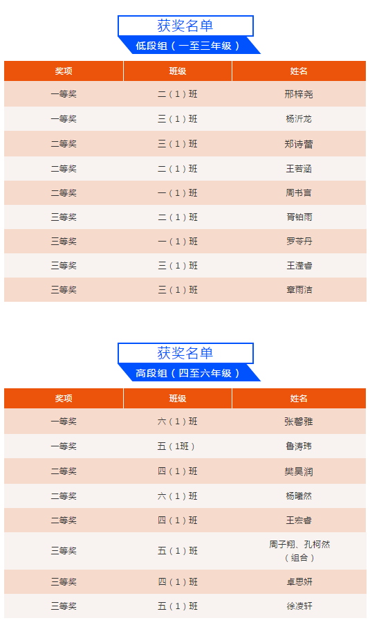 每組選手登臺(tái)時(shí),他們自信的風(fēng)采給人留下了深刻的印象,臺(tái)下親友團(tuán)對(duì)選手們支持的吶喊聲響徹全場(chǎng),比賽氣氛十分活躍。而在選手們進(jìn)行影片配音的過(guò)程中,臺(tái)下觀眾都保持安靜,在觀看投影畫面和聆聽選手們的配音中,感受影片的魅力之處,大家都仿佛融入到了精彩的故事情景當(dāng)中。最終,低段組二(1)班 邢梓堯以95.2分的高分獲得與三(1)班楊沂龍同學(xué)并列第一。高段組六(1)班張馨雅與五(1)班魯濤瑋獲得第一的好成績(jī)。