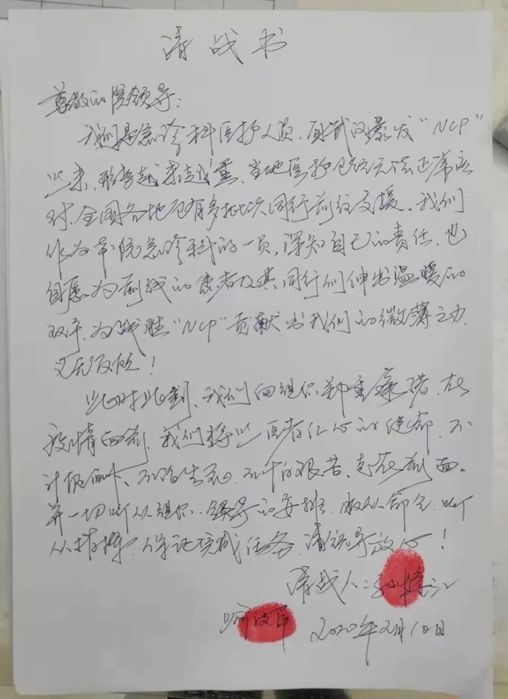 2020年2月10日,他,是長壽區(qū)中醫(yī)院急診科第一個(gè)遞交請(qǐng)戰(zhàn)書的醫(yī)生……