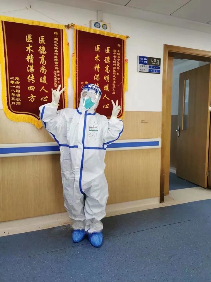 圖為:文娜護(hù)士長(zhǎng)援鄂期間的工作場(chǎng)景