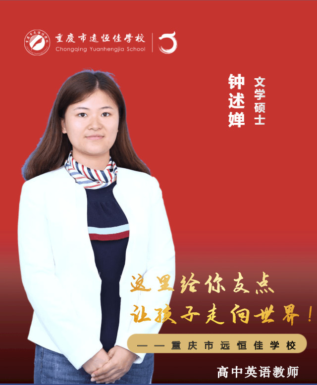 畢業(yè)于四川外國語大學(xué),文學(xué)碩士,曾任教于四川外國語大學(xué)外語教學(xué)部,負責(zé)非英語專業(yè)學(xué)生英語教學(xué),曾任六盤水市外國語學(xué)校初高中外語教育教學(xué),獲校優(yōu)質(zhì)課大賽一等獎。有豐富的高中教學(xué)和班主任經(jīng)驗,2019年指導(dǎo)教師榮獲長壽區(qū)英語優(yōu)質(zhì)課大賽一等獎。