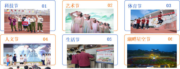 "校園六節(jié)"輪番上演。注重學(xué)生知識、個性、特長、身心的全面發(fā)展,培養(yǎng)復(fù)合型人才??萍脊?jié)、藝術(shù)節(jié)、體育節(jié)、人文節(jié)、生活節(jié)、湖畔星空節(jié)、行走探究活動、志愿服務(wù)……