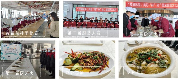 技展風(fēng)采、以賽促練:學(xué)校定期舉行的廚藝大比拼既是廚藝的較量,更是在“比學(xué)趕超”中提升常規(guī)技能、烹飪水平及創(chuàng)意能力,推動食堂餐飲品質(zhì)的發(fā)展。